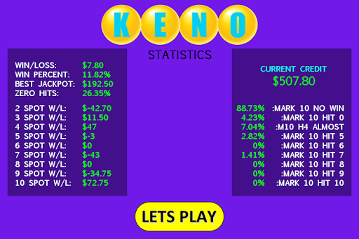 It works similarly like a lottery; place a bet, mark 2-10 numbers and hope the machine picks some, or all, of your numbers chosen from the 20 randomly selected ones. If you hit a certain amount of numbers then you win. The more numbers you hit the more credits you get!