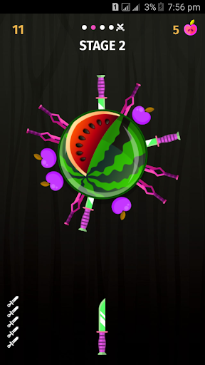 Get a knife hit with every throw and earn points when you slash an apple or berry. There are hundreds of knife hits existent in this game that will take various stages and levels to sort through as soon as you start throwing those knives.