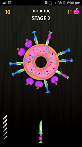 Knife Target Master allows you to anticipate your target before throwing each knife. You have a stated amount of knives allocated to you at each stage. The best way to use those knives is to make sure they are hitting the object in front of you and not existing knives on the object.
