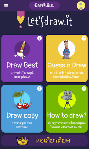 เกมทายภาพหลายคน. ให้คุณเลือกรูปจากคลังของเรา, วาดรูปที่คุณเลือกจากนั้นให้คะเเนนการวาดรูปของผู้เล่นคนอื่น. รูปที่ดีที่สุดจะชนะ!