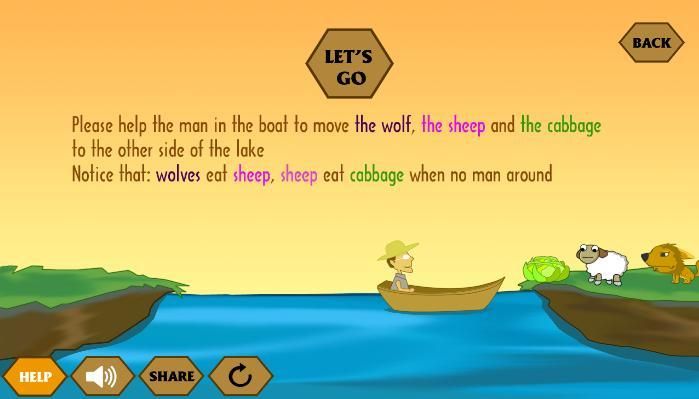 Please help the 3 cannibals and the 3 missionaries to move to other side of the lake.