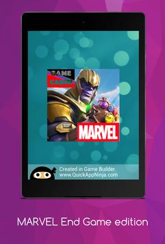 Marvel characters from your favorite movies of Infinity War and End Game of Avengers. This game is made for the die hard fans of Marvel and Avengers movies. This game is specially made for the people who follows Marvel comics and Avengers movies and who wanna know more about Marvel and avengers than what meets the eye in the movies.