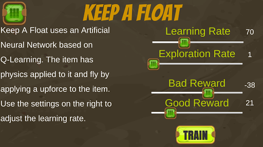 This application has 4 examples that use Deep Learning AI to play the example games. The AI knows he can move an item but does not know with how much or which direction. The AI in these examples have not been trained before but Dynamically trains every time you open an example. They teach themselves very quick with the default settings. Play around with the settings to see how fast the AI can learn.