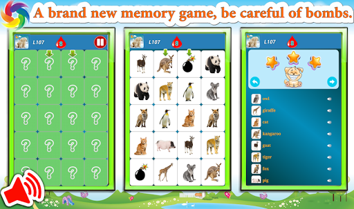 * เกมนี้มีภาพสัตว์ที่น่ารักมาก ๆ ของสัตว์ผลไม้รถยนต์วัตถุที่อยู่ในการ์ดหน่วยความจำ