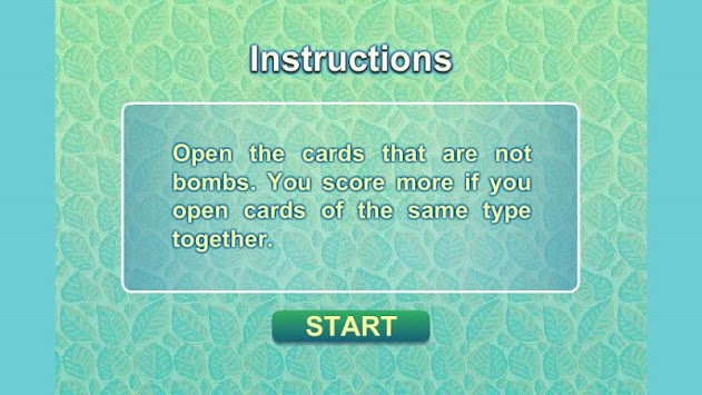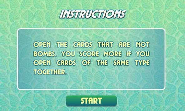 memorize the contents of the cards and once you feel like you examined the cards long enough they will be covered and you will then need to remember the placement of the cards, but you need to avoid the bombs otherwise you will lose the game. You can score more if you can remember the positions of the same items and then open them together. As the game progresses there will be more and more cards and the game will be more and more challenging. This game is free.