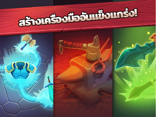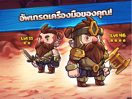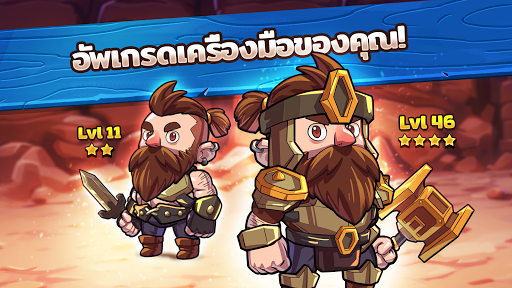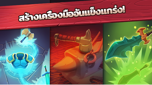 สะสมวัสดุล้ำค่าและพิมพ์ขาวที่น่าสนใจเพื่อสร้างเครื่องมือที่แข็งแรงอย่างพลั่ว อาวุธและเกราะ อัพเกรดอุปกรณ์เหล่านี้เพื่อต่อสู้แบบนักรบแคระผู้กล้าหาญ!