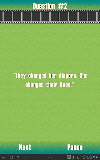 More than a thousand of questions! Relive the fun, entertaining and memorable moments in movies! This classic trivia game asks a series of multiple-choice questions. Get two-and-a-half stars or more for a "thumbs up" performance and you earn a bonus question. Fun to play, or just fun to read the entertaining questions and answers. Play alone or share the phone or tablet to challenge a friend.