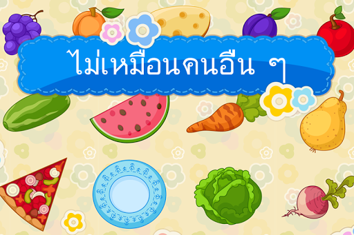 แต่ละรอบบนหน้าจอมีวัตถุ 4 ชิ้น โดยที่ 3 ชิ้นจะอยู่ในประเภทเดียวกัน แบ่งหมวดหมู่ดังกล่าวมักเป็นชื่อ (ตัวอย่างเช่นเฟอร์นิเจอร์, ของเล่น, ผลไม้ ... ) ชิ้นที่ 4 ที่ไม่ได้จัดอยู่ในหมวดหมู่เดียวกันนั่นคือ “ไม่เหมือนสิ่งอื่น” ยกตัวอย่าง วัตถุที่ให้เป็น ช้อน หม้อหุงข้าว แอปเปิ้ล และส้อม วัตถุสามชิ้น(ช้อน หม้อหุงข้าวและส้อม)จัดอยู่ในประเภทเดียวกันคือ ภาชนะ แอปเปิ้ลคือผลไม้ไม่ได้จัดอยู่ในหมวดหมู่ของภาชนะ ภารกิจคือเด็ฏต้องเลือกวัตถุที่ไม่เหมือนอันอื่น