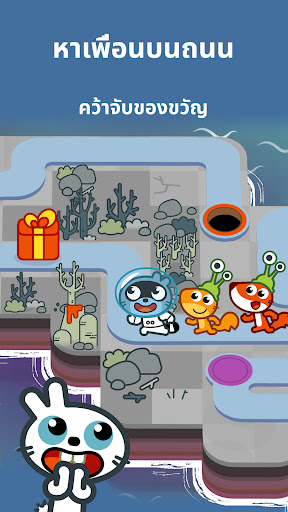 หาเพื่อนและเก็บของขวัญในระหว่างเส้นทางที่จะช่วยเพิ่มขนาดคอลเลกชันการปลอมตัวของตัวนิ่ม!
