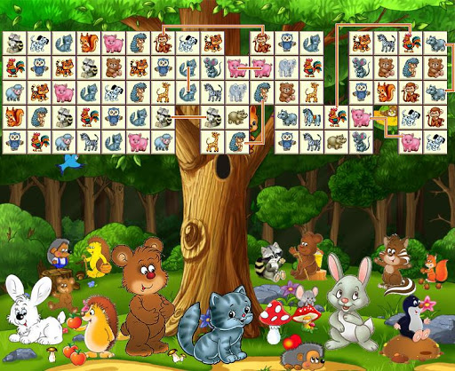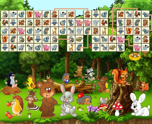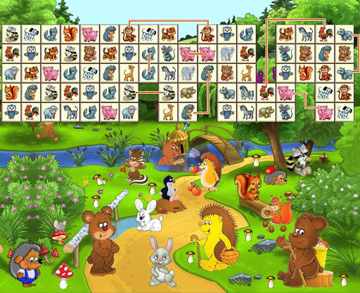 A logical game for children and adults. It is necessary to find the same pictures with funny animals, which can be joined by a line that has no more than two bends!