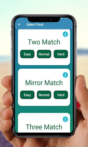 Game consist of 4 packs (Two match, Three match, Mirror match and Limited Tries) each pack consist of 3 Modes (Easy, Normal, and Hard) each mode consist Lot of Levels.