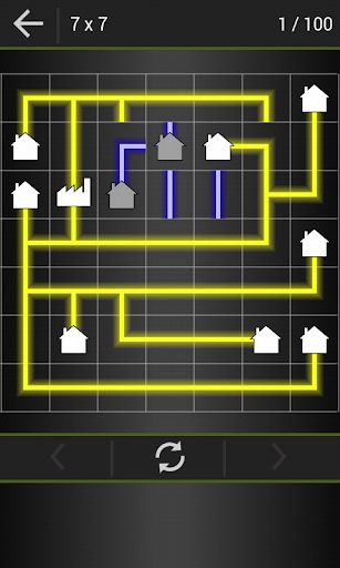 Your goal is to connect every house on board to power factory. Follow power line with your finger, start from power factory, rotate line and let electricity flow to all houses.