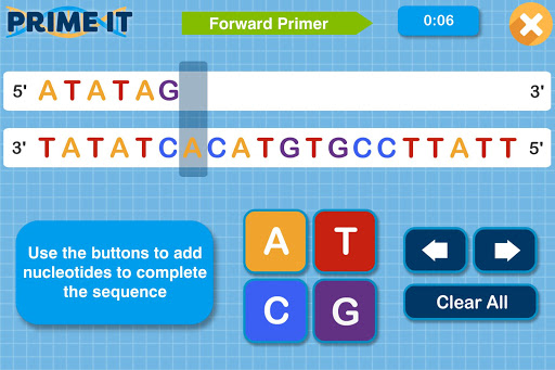 Undertaking a molecular course as part of your education? This game is aimed at students with knowledge of DNA and undertaking a molecular course. It was designed by a University of Glasgow undergraduate student and aims to help with your understanding of PCR primer design. Speed and accuracy are required to get a good score!