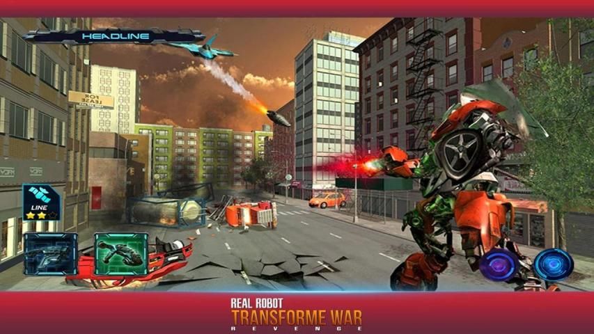 Get the amazing Real Robot Transformer War Revenge. In this crazy game you will be fighting actually with a robot car, and car robot fighting in the sky of Futuristic city which Dark of fell very adventurous Devastation and challenging.
