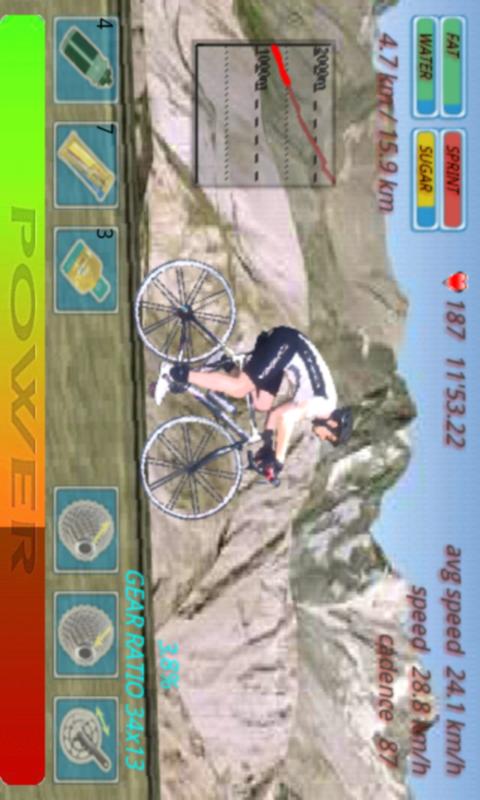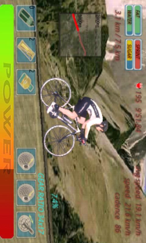 Ride your road bike and climb up some of the most famous peaks of Tour de France with their real profiles.* Calculation of real cycling power taking into account the resistance of friction, air and gravity.* 2 stages with real profiles.* Gain experience up to level 5 and customize your player.* Food management * compete with others by the online score ranking system.Start the climb easy, the most common mistake is to start fast, hit the wall and drop ;)Recent changes:* Level-based experience system.* Character customization.* More accurate profiles.* Bug fixes.content rating: Everyone