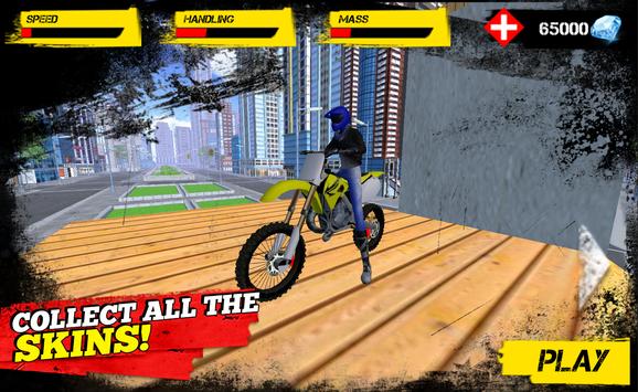 Put on your helmet and step on your bike. Kick the starter and drive until you see the highest ramp and jump as far as you can! Will you land on the next rooftop? No one knows but you! Are you the daredevil we are looking for in