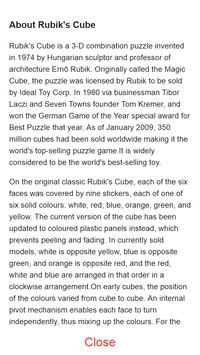 Rubik's Cube is a 3-D combination puzzle invented in 1974 by Hungarian sculptor and professor of architecture Ernő Rubik. Originally called the Magic Cube, the puzzle was licensed by Rubik to be sold by Ideal Toy Corp. In 1980 via businessman Tibor Laczi and Seven Towns founder Tom Kremer, and won the German Game of the Year special award for Best Puzzle that year. As of January 2009, 350 million cubes had been sold worldwide making it the world's top-selling puzzle game.It is widely considered to be the world's best-selling toy.