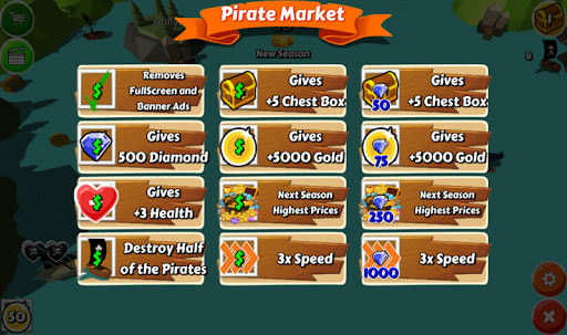 pirates with their CannonBalls and collect the falling treasures. your goal is to have the greatest treasure of the seas