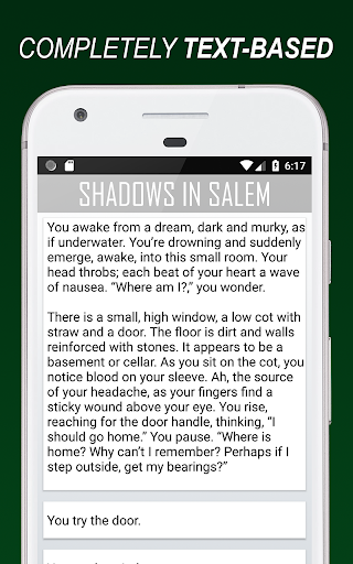 Shadows in Salem is reminiscent of the old style Choose Your Own Adventure books (CYOA). In the age of modern technology, we strive to realize the core of what matters most- storytelling. As a completely text-based game, you are left alone to visualize the adventure, and YOU are the main character.