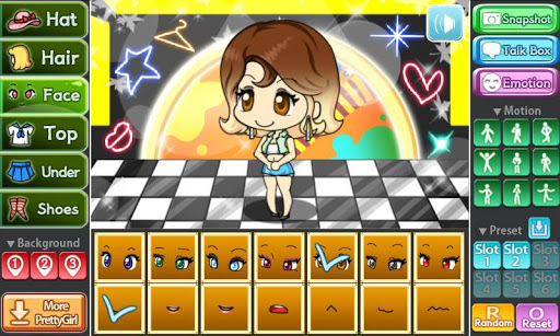 คุณสามารถสร้างสาวสวยของคุณเองการ์ตูนโดยใช้การแสดงอารมณ์และบทสนทนาต่าง ๆ