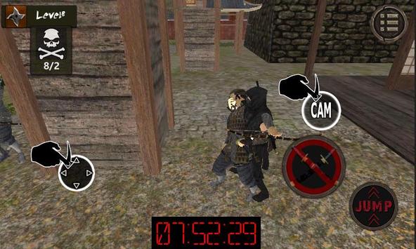 Crime Control Warring States Period japanese Hitman defending its territory from humans. Sneak up on enemy warrior samurai and kill them wit your strong hits. In this Android game you have to control a Hitman Ninja , who is infuriated by the fact that there humans entered his territory. Penetrate the military camp, City, and other places where samurai settled to destroy them all. Be careful, the samurai are well-armed. So you need to use a variety of shelters, guide your hero along rooftops, etc. Attack enemies from behind.