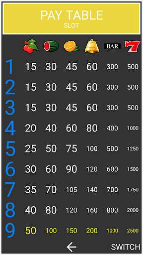 Please check the detail of the payout by touch "PAYTABLE" in the app.