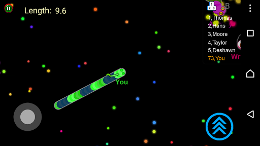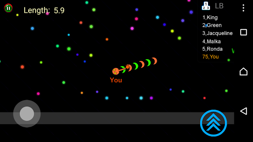 A single mistake is enough to make a giant turn into nothing and lead to game over, even against the smallest player, granting this latter a chance of becoming stronger and faster without effort. Focus on the luminous dots along the way, forget about the others except when you’ve got enough length to trap them in circles. Note that it’s possible to cross ways with your own body, without punishments.