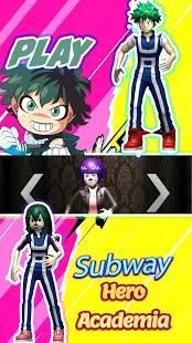It can be said with certainty that 20,000+ users downloaded Subway Hero Academia latest version on 9Apps for free every week! And it was enormous fun This hot app was released on 2018-04-10. Here are some guides of this app: