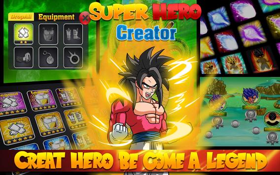 In this App , you will create new hero like Super Saiyan , create new stories with him . You can fight ,action and go adventure like other super saiyan hero. Create your own super hero with super awesome dresses ,you will design clothe, armor , hair , chosen his item and make him a new Super Saiyan Z Warriors by your style.