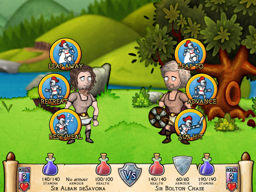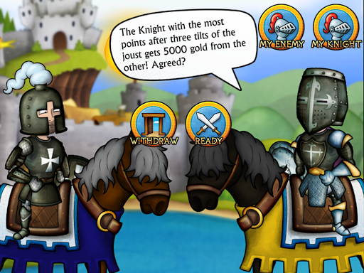 ในดาบและรองเท้าแตะกลางคุณเริ่มเป็นชาวนาและเปลี่ยนเขา เป็นหนึ่งในอัศวินที่ยิ่งใหญ่ที่สุดในอาณาจักร คุณจะต่อสู้กับอัศวินคนอื่น ๆ Joust ไปเควสและรับการผจญภัยที่กล้าหาญทุกประเภท
