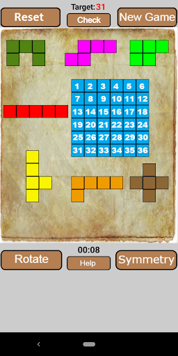 เป้าหมายของเราคือปิดหมายเลขทั้งหมดยกเว้นหมายเลขเป้าหมายที่มีรูปร่างที่เหมาะสมครั้งแรกที่เราเลือกรูปร่างที่เราต้องการใช้จากนั้นเราหมุนไปที่รูปร่างที่เราต้องการด้วยสมมาตรหรือปุ่มหมุนและลากไปยังสถานที่ที่เราต้องการออกไปในตาราง