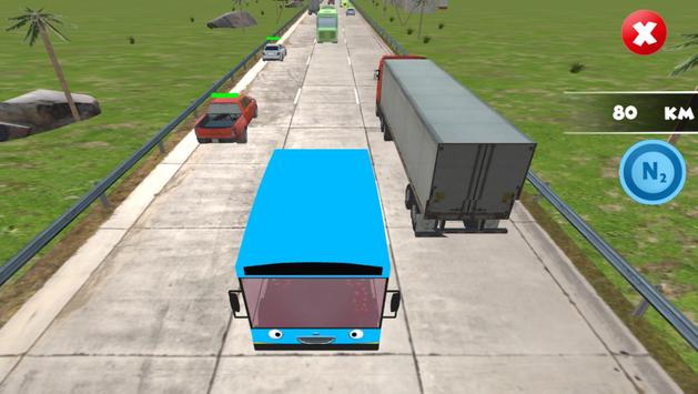 This is a game that trains to drive safety and learn the traffic, you must run the bus child and race to avoid the cars on the road. you have to pass the obstacles and race the car up to the finish line, so you can reach next level that more challenging for the little bus games.