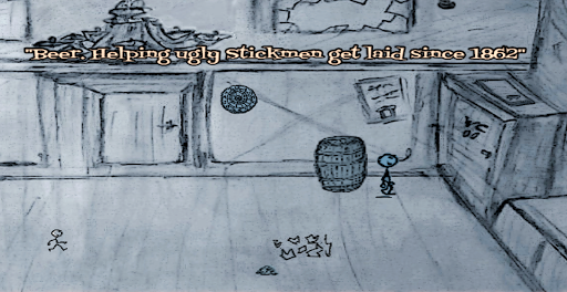 "Stickman Adventures" is an existentialist Point and Click graphic adventure game, completely hand drawn using only a pencil and a ruler.