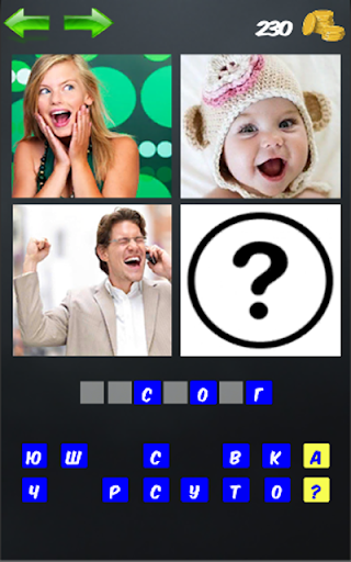 คุณได้รับเชิญให้เดาคำที่รวมรูปภาพสี่ภาพ แต่ที่จุดเริ่มต้นของ ระดับเดียวเท่านั้นที่เปิดอยู่ที่จุดเริ่มต้นของระดับ! รูปภาพที่เล็กกว่าที่คุณเปิดมากยิ่งฉันจะได้รับคะแนนมากขึ้นสำหรับการรับคำของคำ!
