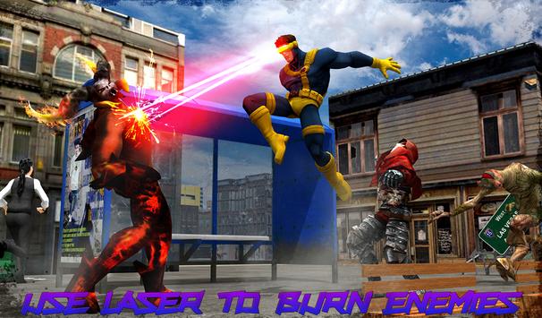 Fight in the era of superheroes. Become two powerful superheroes equipped with super sharp abilities. One hero can shoot laser beams from his eyes can burn anything in his sight. The other superhero can slice anything with his hair-thin sharp blades. Become the mutant superhero and defend the city from enemy attacks, local raids, attacks from mafia, alien attacks and capture and protecting people and cities against a vast spread zombie apocalypse. Fight in the era of modern street fighting and level up your fighting abilities in this epic simulator Titans King Fighter. Become the savior of human kind in the intense epitome of chaos and battle raged forces of nature. Kill as many aliens as you can and go on missions to kill all aliens from the city. Fight off gangsters and capture them before they kill any local civilian. Fight like a modern mutant superhero and shoot laser beams on enemies. You can burn enemies from laser beam and destroy them easily.