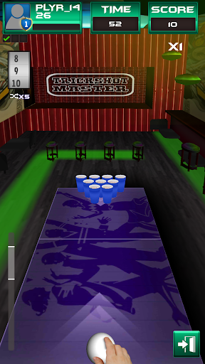 TrickShot Master เป็นเกมที่มีผู้เล่นหลายคน Crazy 3D BeerPong พร้อมทัวร์นาเมนต์ Trickshot ที่มีเบียร์หกถ้วย