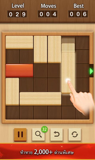 เลื่อนขึ้นและลงหรือขวาและซ้ายเพื่อปลดบล็อคไม้สีแดงแล้วคุณจะชนะ!