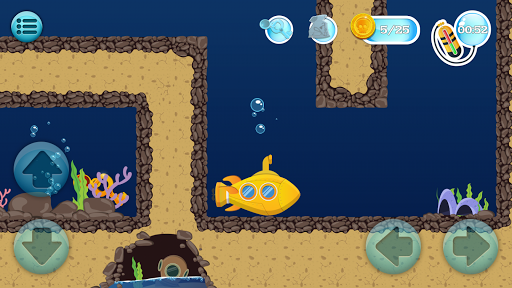 Look for ways out of the underwater maze on your submarine!