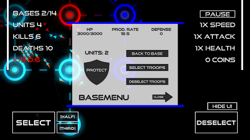 - fortify your bases: increase health, production rate or build defenses!