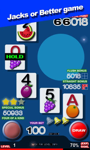 สุดยอดวิดีโอโป๊กเกอร์ที่คุณสามารถเล่นออนไลน์หรือออฟไลน์ได้โดยไม่ต้องอินเทอร์เน็ต แจ็ควิดีโอโป๊กเกอร์หรือดีกว่าสามารถให้ความบันเทิงเมื่อถืออัตโนมัติพร้อมใช้งาน การเล่นเกมนั้นรวดเร็วและการถืออัตโนมัตินั้นฉลาดพอที่จะเลือกการ์ดที่พร้อมสำหรับการจับไพ่หกใบ นี่เป็นวิดีโอโป๊กเกอร์ที่ดีที่สุดเพื่อความสนุกสนานและผ่อนคลาย