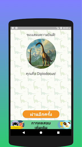 การทดสอบแสดงไดโนเสาร์จำนวนมากและหนึ่งในนั้นจะเหมาะกับคุณอย่างแน่นอน! นี่ไม่ใช่เครื่องจำลอง! การทดสอบจะเปรียบเทียบคำตอบของคุณกับนิสัยและพฤติกรรมของไดโนเสาร์ที่ต่างกันและกำหนดว่าใครเป็นไดโนเสาร์ที่มีความบังเอิญมากขึ้น