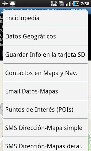 3. ข้อมูลนี้พร้อมกับสภาพอากาศปัจจุบันการพยากรณ์อากาศ, อัลบ้า, พระอาทิตย์ตกข้อมูลทั้งหมดเกี่ยวกับสถานที่นั้นที่คุณอยู่ (ประชากร, ลักษณะทางภูมิศาสตร์และการเมือง ฯลฯ ... ), มุมมองที่แท้จริงในภาพของสถานที่นั้น, แผนที่ที่เรียบง่ายและ รายละเอียด; ทั้งหมดนี้สามารถรวมกันหรือแยกต่างหากเพื่อกำจัดข้อมูลทั้งหมดของสถานที่ที่คุณอยู่และสามารถส่งไปยังเพื่อนโดย SMS และ / หรืออีเมล นอกจากนี้คุณยังสามารถบันทึกไว้ในการ์ด SD มือถือของคุณในไฟล์ข้อความ