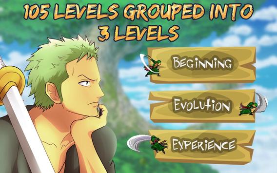 - Dozens of fun levels : once the game starts, the fun goes on for dozens of hours as ZORO Pirate Hunter has no less than 102 different levels, Each level contain different enemies and new attacks that you can use to become more powerful, the more you advance you'll be more excited to hunt zoro enemies