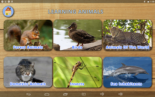 2) All the pictures are divided into 6 groups: domestic, forest, world, insects, birds, sea creatures;