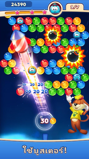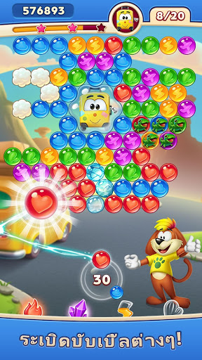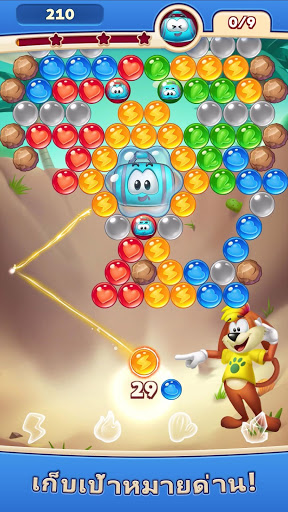 ยิงทำลายบับเบิ้ลให้หมด ใช้วิธีของท่านพิชิตด่านให้ได้คะแนนเต็ม 3 ดาว ใช้สกิลที่แข็งแกร่ง ปลดล็อกด่านต่างๆ ระหว่างการผจญภัยท่านจะได้รับหีบพิเศษที่เต็มไปด้วยเหรียญทอง และ บูสเตอร์สุดเจ๋ง!