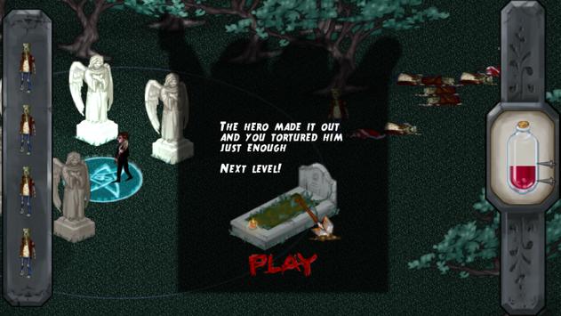 These heroes are so annoying. But still so fun to toy with. The seasoned zombie overlord doesn't kill his victim too soon. You need to hurt him the right amount, but leave him with enough health to continue the story.