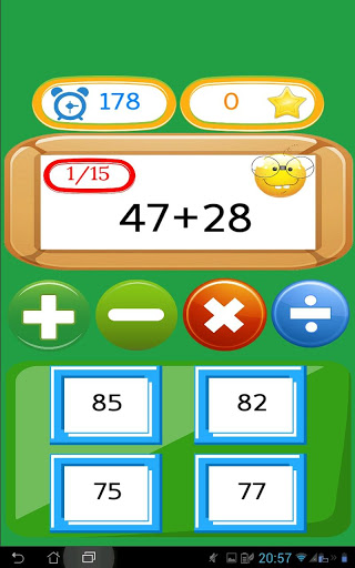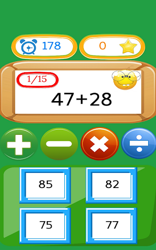 เกมคณิตศาสตร์เป็นเกมการเรียนรู้การศึกษาฟรีสำหรับเด็ก เกมดังกล่าวรวมถึงการบวกการลบการคูณและการหาร คุณสามารถทำการทดสอบคณิตศาสตร์ในระดับความยากที่แตกต่างกันสี่ระดับ