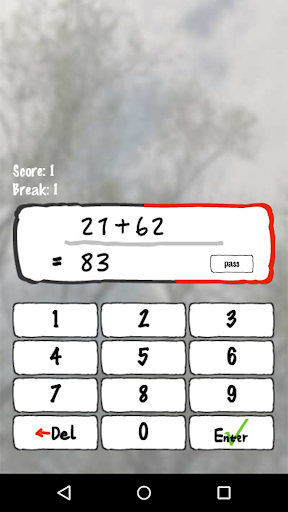 After the start of the game, there will randomly gives arithmetic problems, the player need to give the answer of problems with mental arithmetic ability, if the answer is correct then the game will continue to use the answer to make next topic.
