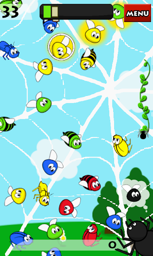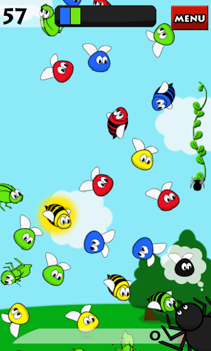 Spider is getting hungry and wants to feast on some coloured bugs. Lucky for him, an endless stream of bugs are falling from the sky and he can take his pick! Can you help him satisfy his hunger?