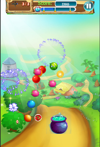 "ในการเล่นเกมนี้เป็นเรื่องง่ายจริงๆเพียงแค่ทำให้การรวมกันของ 3 ตัวหรือผลไม้อื่น ๆ ที่มีสีเดียวกันจะทำให้พวกเขาล้มลง / ปิ๊ / ระเบิดและ